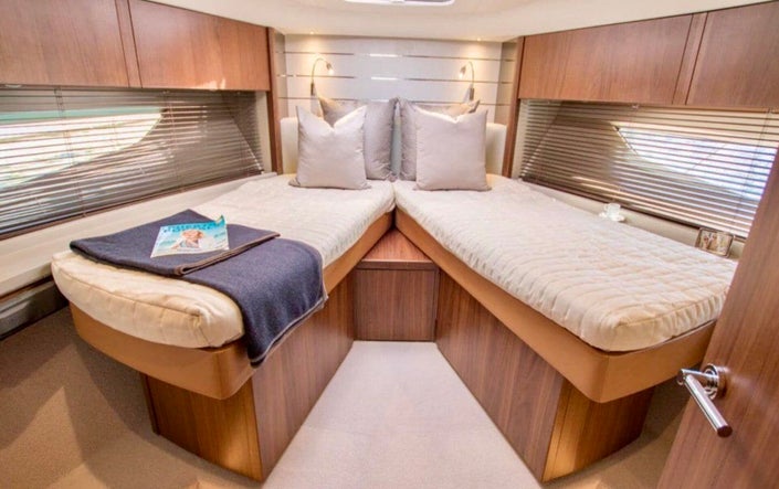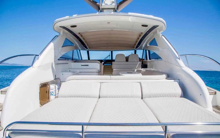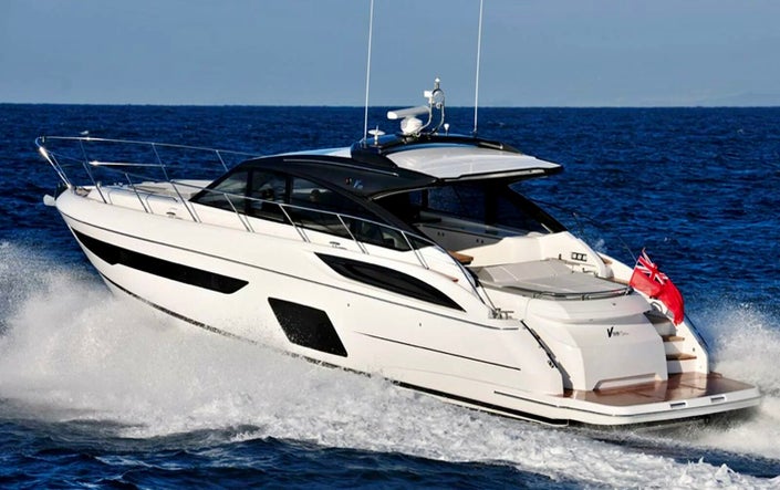 The Princess V58 epitomizes luxury and performance in a sleek and sporty design. With a well designed deck layout, spacious interiors featuring multiple cabins and a stylish salon, the Princess V58 caters to both day trips and extended stays. Engineered for impressive performance, the Princess V58 ensures a smooth and efficient yacht charter, reflecting Princess Yachts' commitment to quality construction. This Princess V58 yacht offers a perfect blend of elegance and functionality, for an unforgettable yacht charter experience.