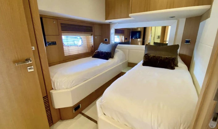 The opulent Sunseeker Predator 86 offers accommodation for 8 guests across 4 cabins. The Sunseeker 86 Yacht offers both speed and endurance. Whether embarking on a short coastal jaunt or a lengthy ocean crossing, yacht guests will discover an array of engaging features. The Sunseeker 86 has an expansive flybridge, complete with a sleek hardtop for shade, a well-appointed bar, and plush sofas. It creates an ideal space for relaxation and casual conversations. Choose BST Sunrise for an amazing yacht charter experience.